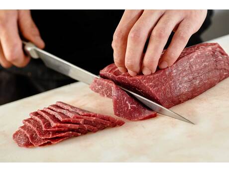 焼肉の美味しさは素材の品質が一番ですが、その品質を100%引き出してお客様に「旨い」と言って頂くためには高度なトリミングやカッティングの技術がとても重要です。